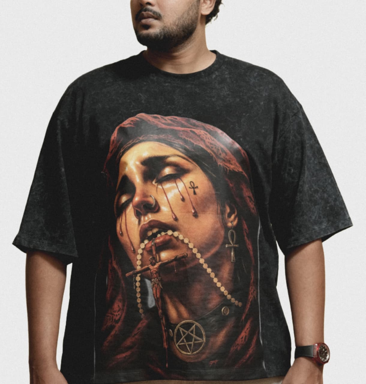 • Unisex.• 240 GSM.• Fabric: 100% Cotton.• Color: Washed Black / Vintage Fade.• Fit: Relaxed & Oversized.• Front Print: "Void Breed" with a striking horned skeleton,...
