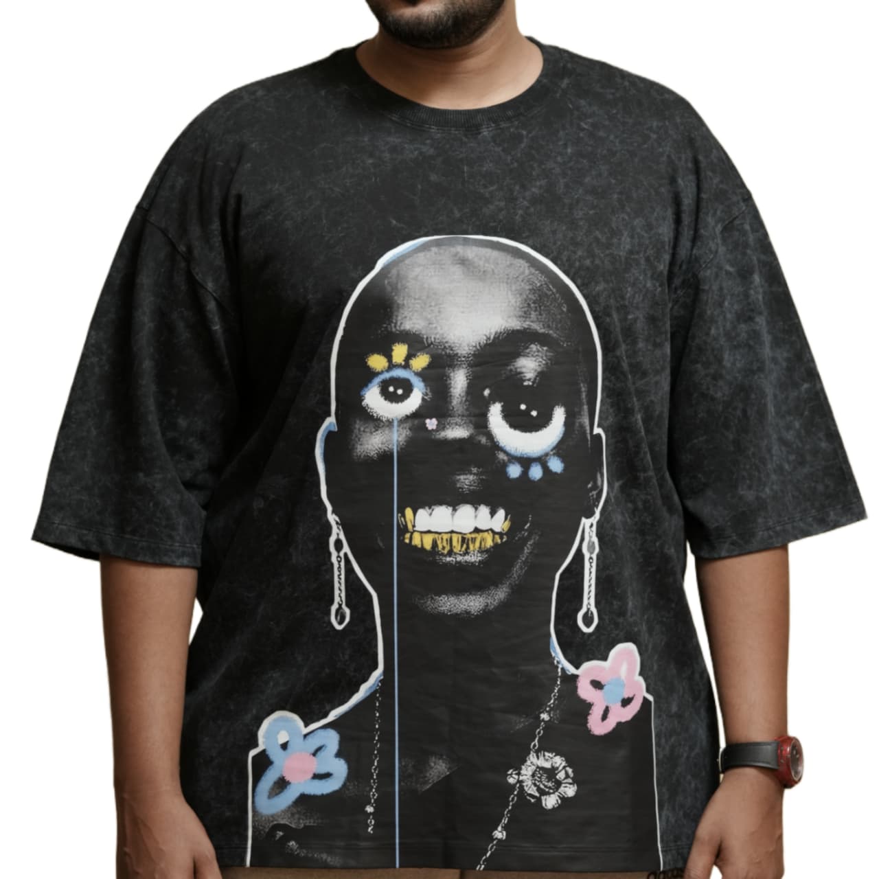 • Unisex• 240 GSM• Fabric: 100% Cotton• Fit: Relaxed & Oversized• Color: Washed Black / Vintage Finish• Back Print: Grotesque "Sweet Horror" graphic featuring a monstrous...
